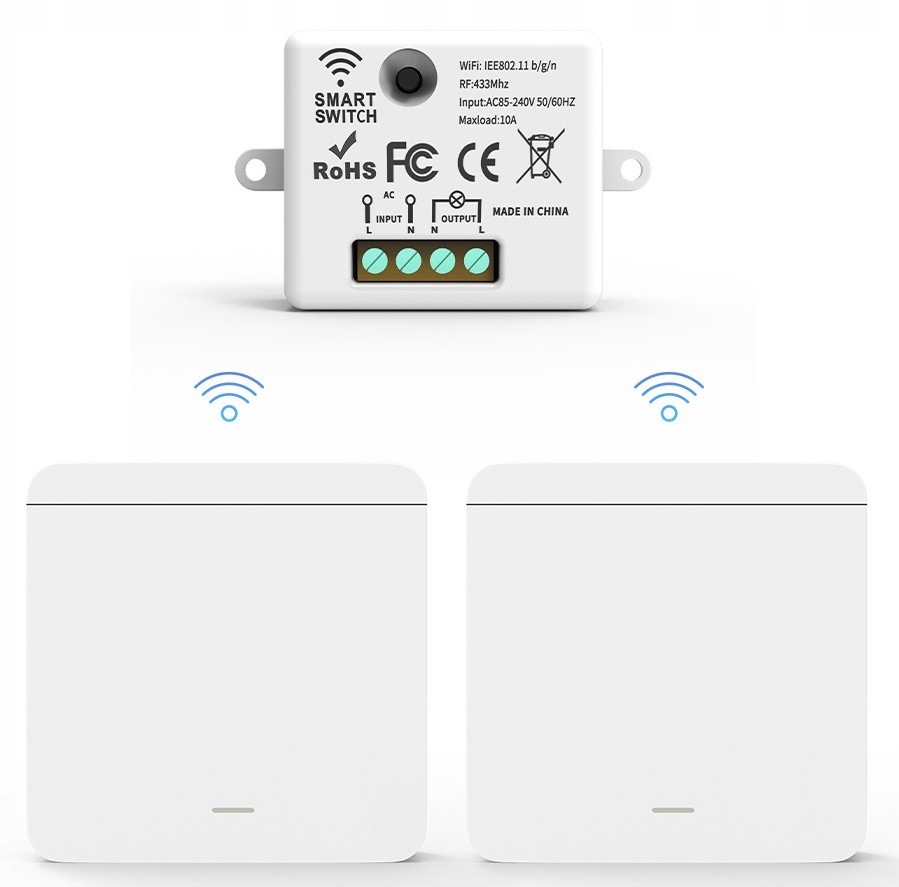 BEZPRZEWODOWY WŁĄCZNIK ŚWIATŁA Z 2-CZĘŚCIOWYM NAŚCIENNYM RF 433 MHz 10 A